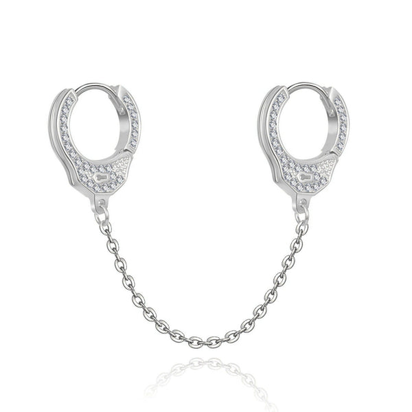 Boucle en forme de menottes, reliées par une petite chaîne et décorées avec des petits zircons brillants, en argent sterling (925).